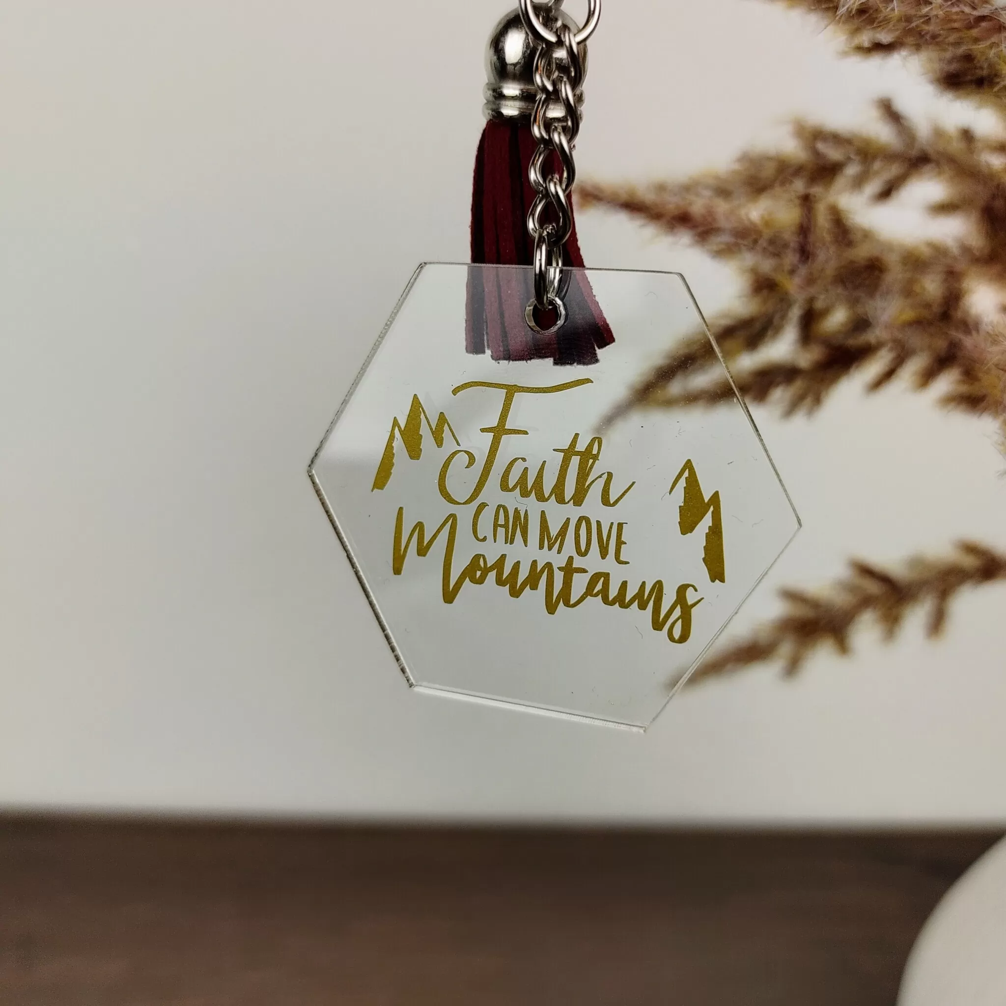 Schlüsselanhänger aus Handarbeit. Text und Grafik aus widerstandsfähigem Vinyl geschnitten.