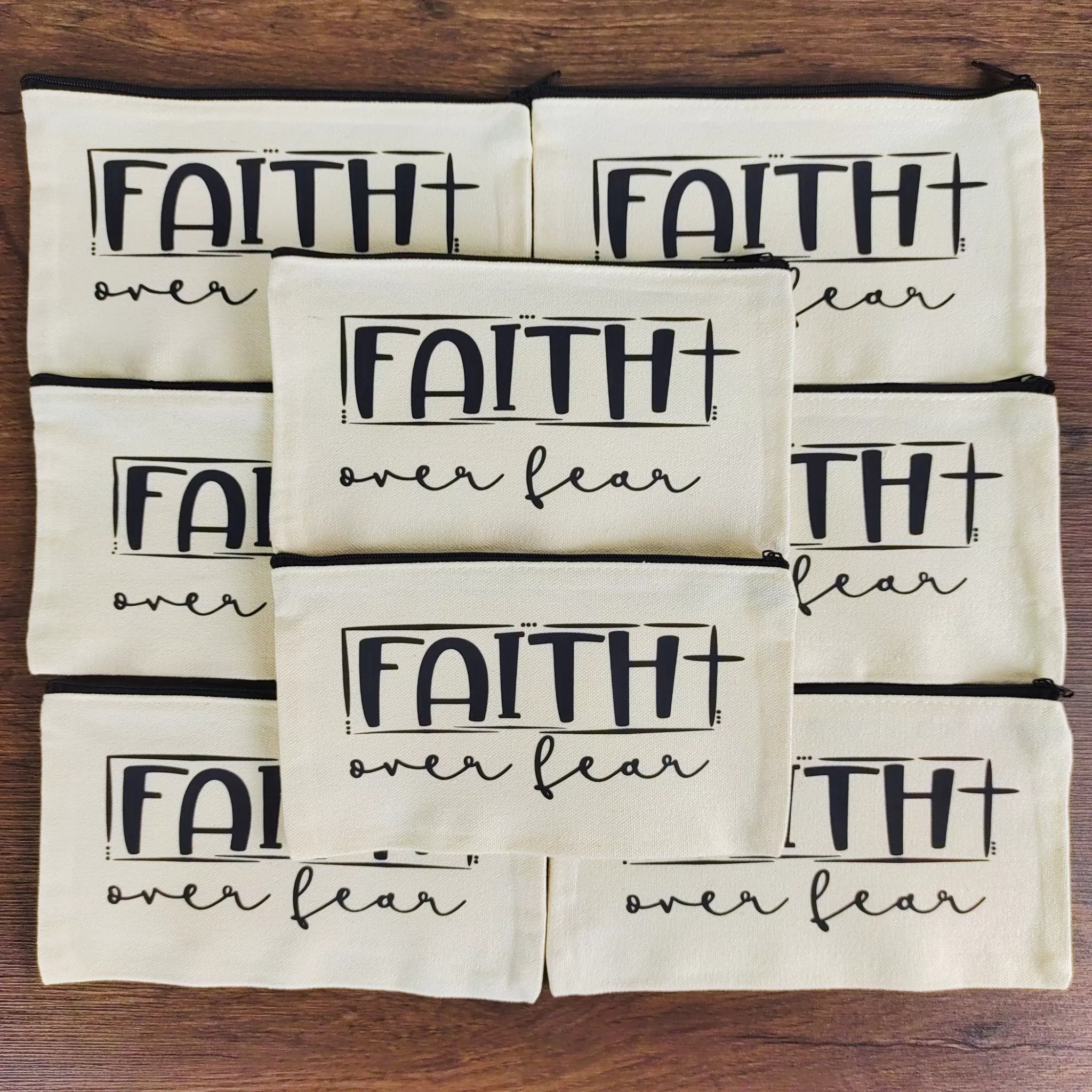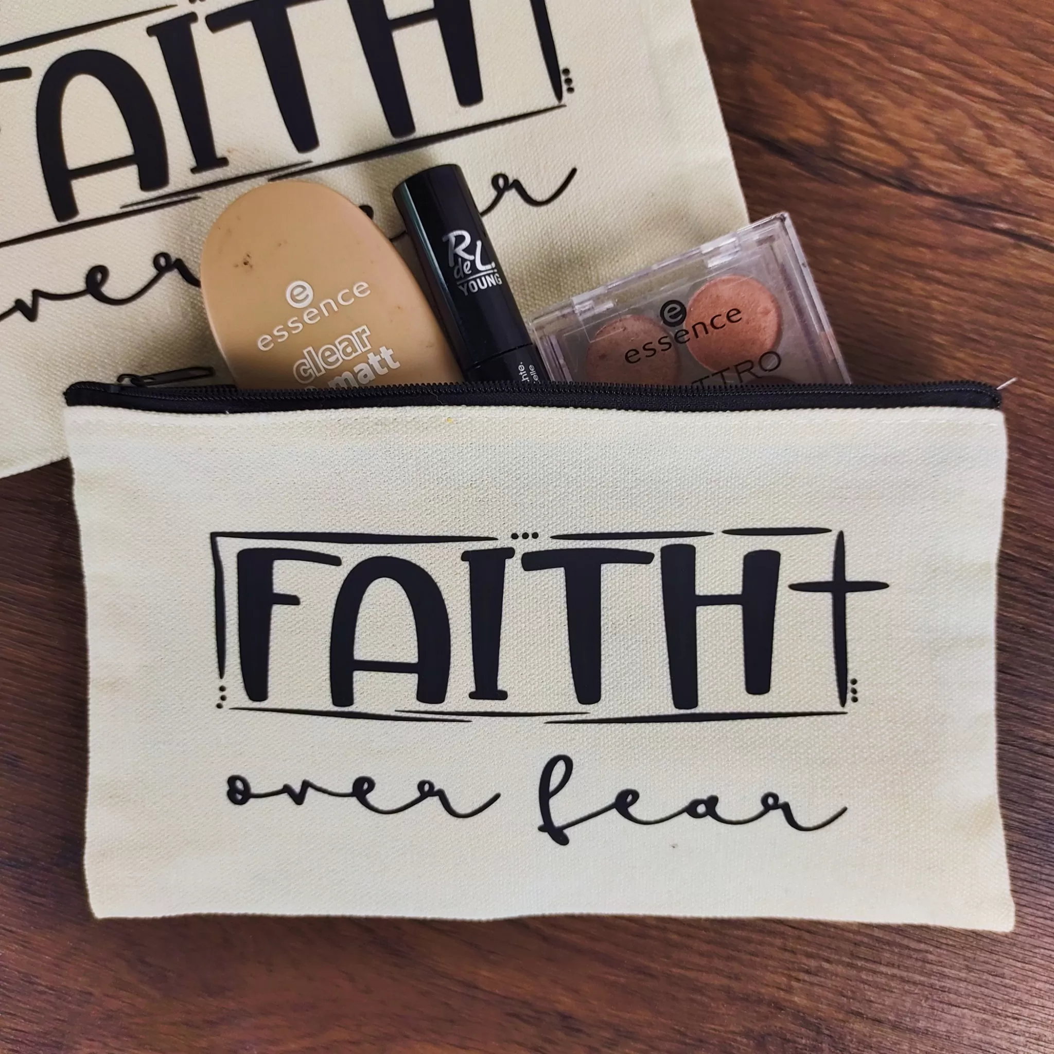 Du hast etwas zu verstauen? Wir bieten dir den Raum dafür! Der Aufdruck „Faith over fear“ soll dich daran erinnern, dass du durch deinen Glauben stärker als deine Ängste bist.
