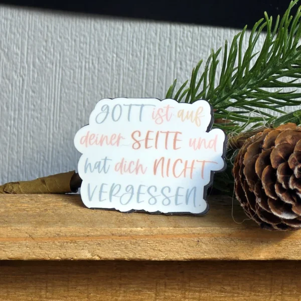 Du brauchst eine kleine, aber kraftvolle Erinnerung daran, dass Gott dich sieht – jeden Tag? Diese 5 von uns gefertigten Vinyl-Sticker tragen die tröstende Zusage: „Gott ist auf deiner Seite und hat dich nicht vergessen.“ Ein Vers, der dich im Alltag daran erinnert: Er hält Seine Verheißungen. Immer. Egal, was kommt.