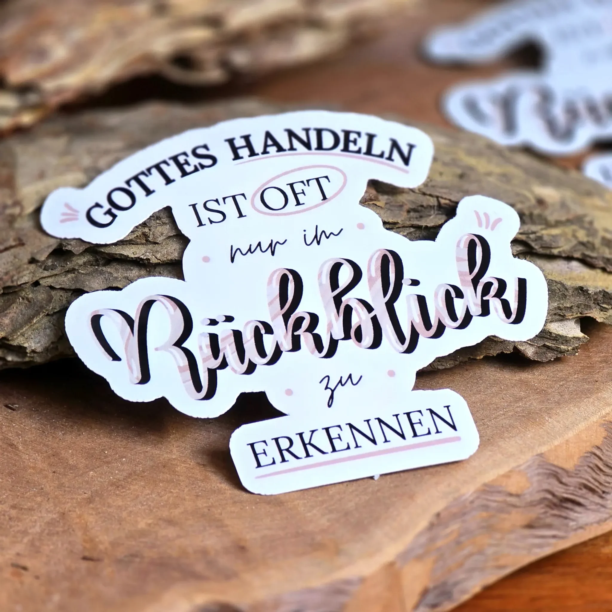 Genau dann ist dieser Spruch Gold wert: „Gottes Handeln ist oft nur im Rückblick zu erkennen.“ Dieses 5er-Sticker-Set ist dein kleiner Glaubens-Booster für Tage, an denen du einfach nicht mehr weiterweißt. Kleb ihn auf dein Notizbuch, den Laptop oder die Wasserflasche – und lass dich erinnern: Gott hat dich nicht vergessen. Er arbeitet im Hintergrund, auch wenn du es gerade nicht siehst.