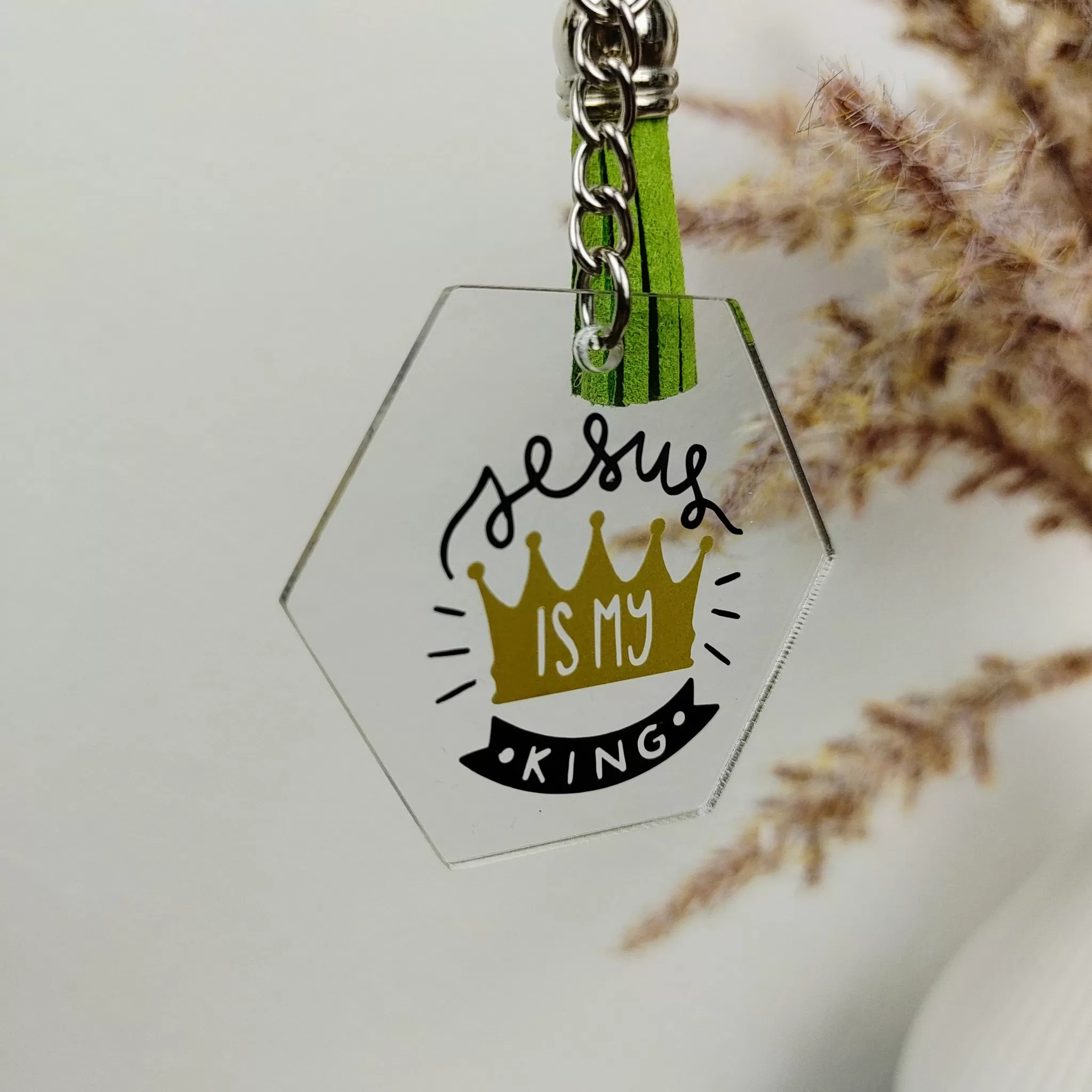 Schlüsselanhänger aus Handarbeit. Text und Grafik aus widerstandsfähigem Vinyl geschnitten.