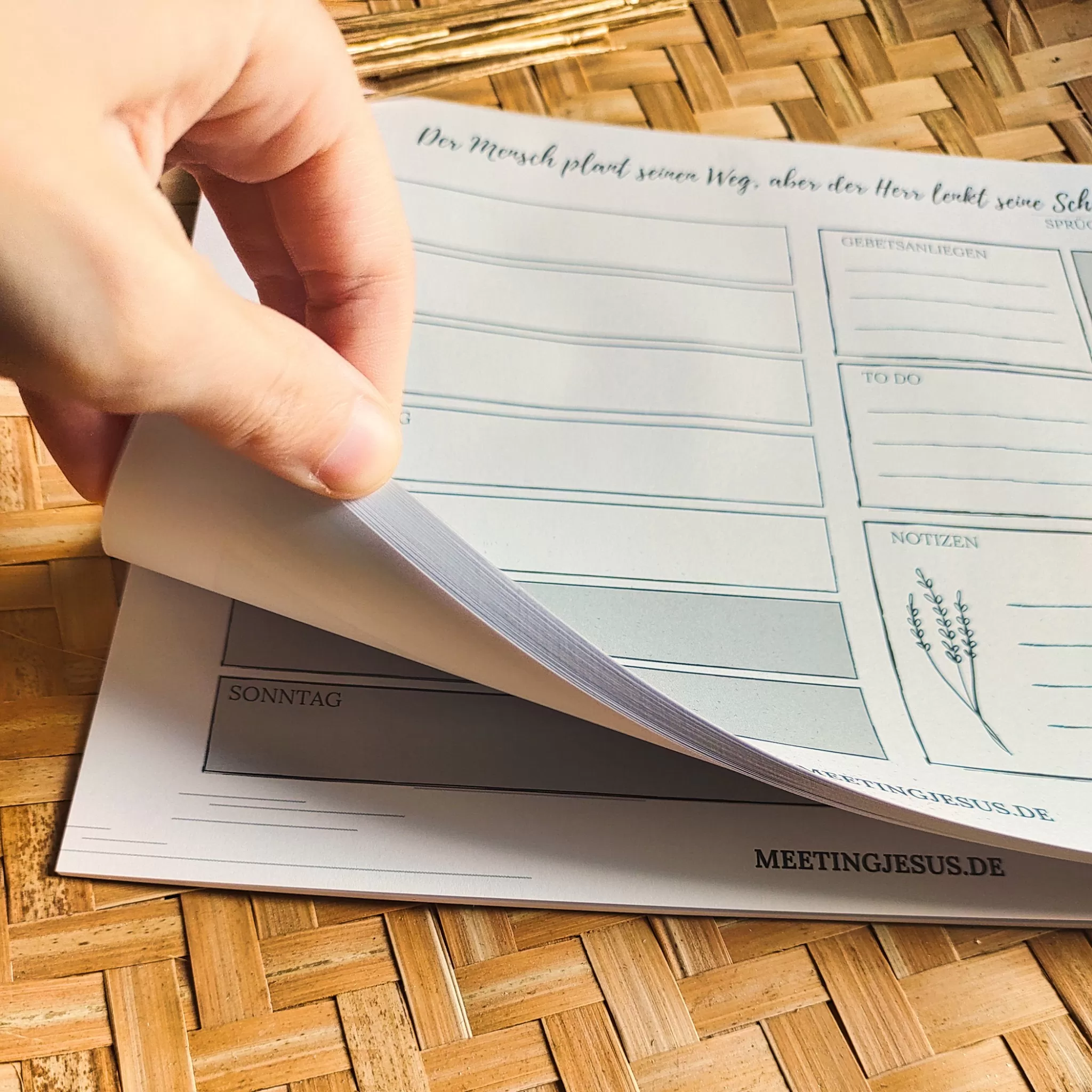 Mit diesem Planer kannst du deine Woche nicht nur organisiert, sondern auch im Vertrauen auf Gottes Führung gestalten. Alle Seiten sind identisch gestaltet, sodass dieser Block dich ein ganzes Jahr lang begleiten kann.
