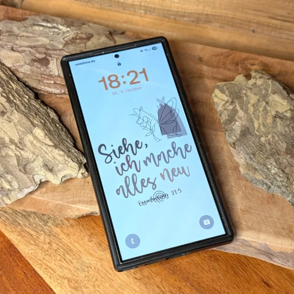 Dein Alltag braucht Ermutigung – und was könnte schöner sein, als Gottes Zuspruch immer bei dir zu tragen? Unser kostenloser Smartphone-Wallpaper mit der Jahreslosung 2026 „Siehe, ich mache alles neu“ (aus Offenbarung 21:5) erinnert dich täglich daran: Gott schenkt dir einen Neuanfang. Das minimalistische Design im handlettering-Stil, zarten Linien und einem Schmetterling strahlt Hoffnung aus – perfekt für alle, die Glauben und Ästhetik verbinden. Die gedeckten Farbtöne in Beige, Rosé und Grau passen zu jedem Stil und lassen das Wort Gottes sanft leuchten.