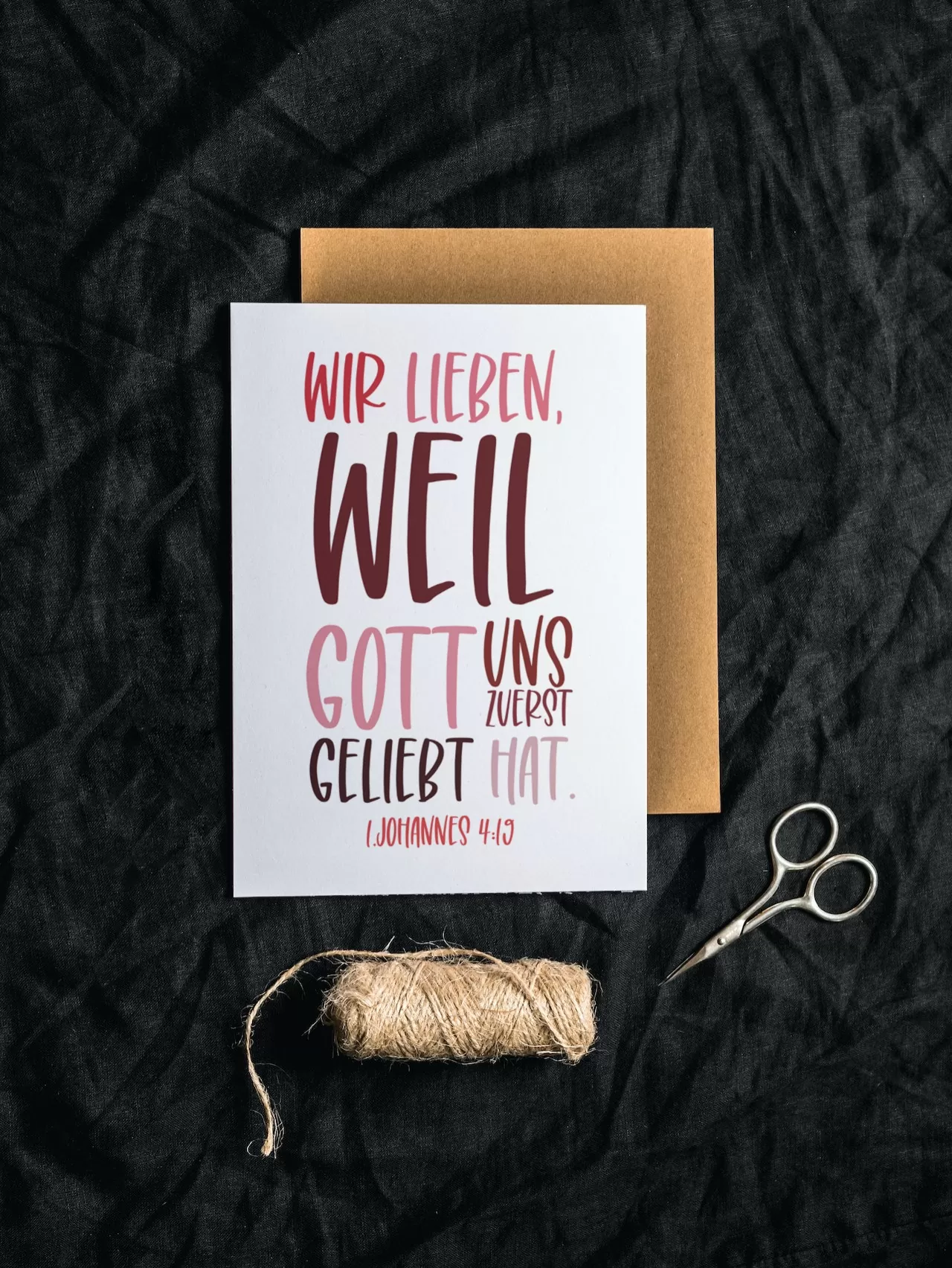 Wir lieben weil Gott uns zuerst geliebt hat , 1. Johannes 4, 19 – Postkarte