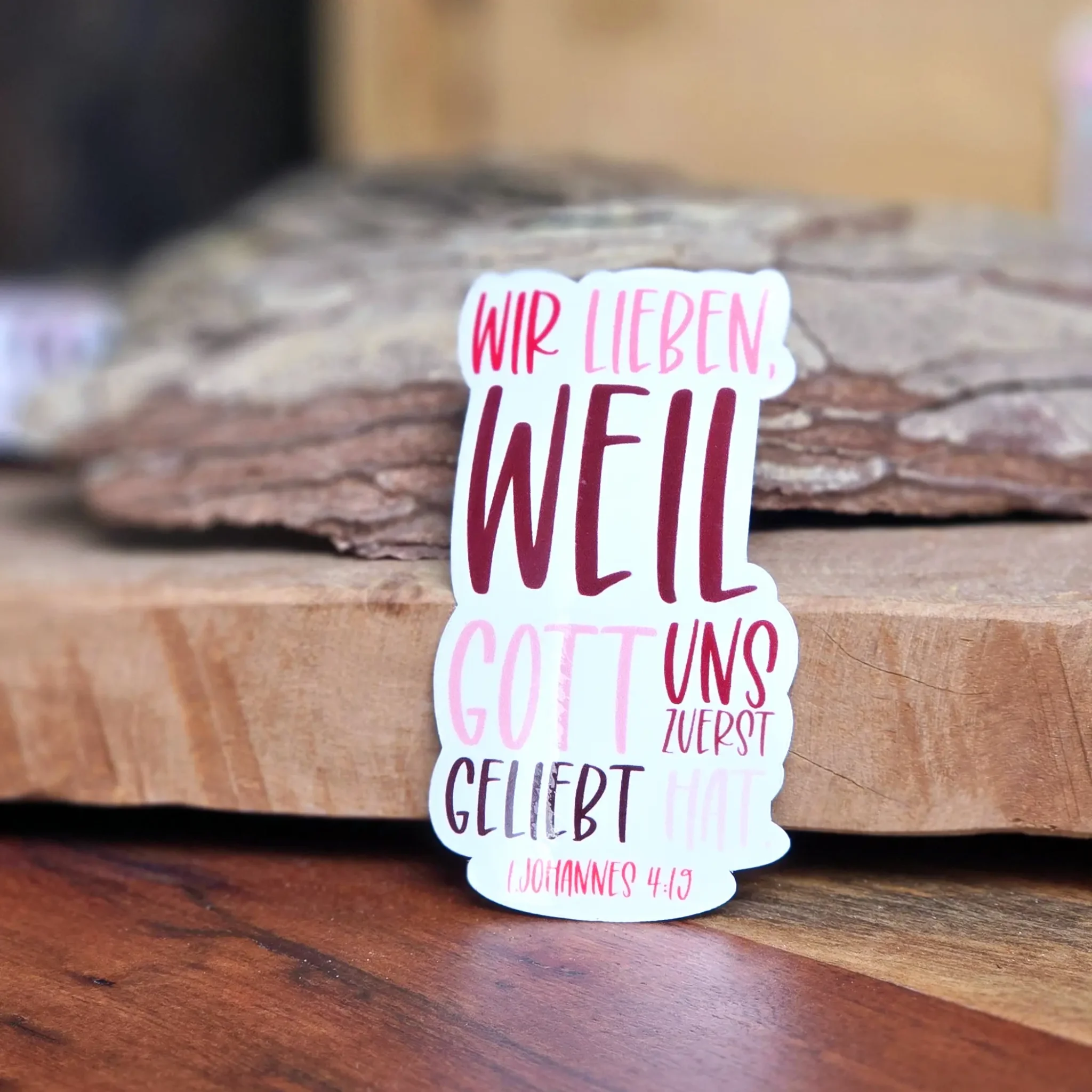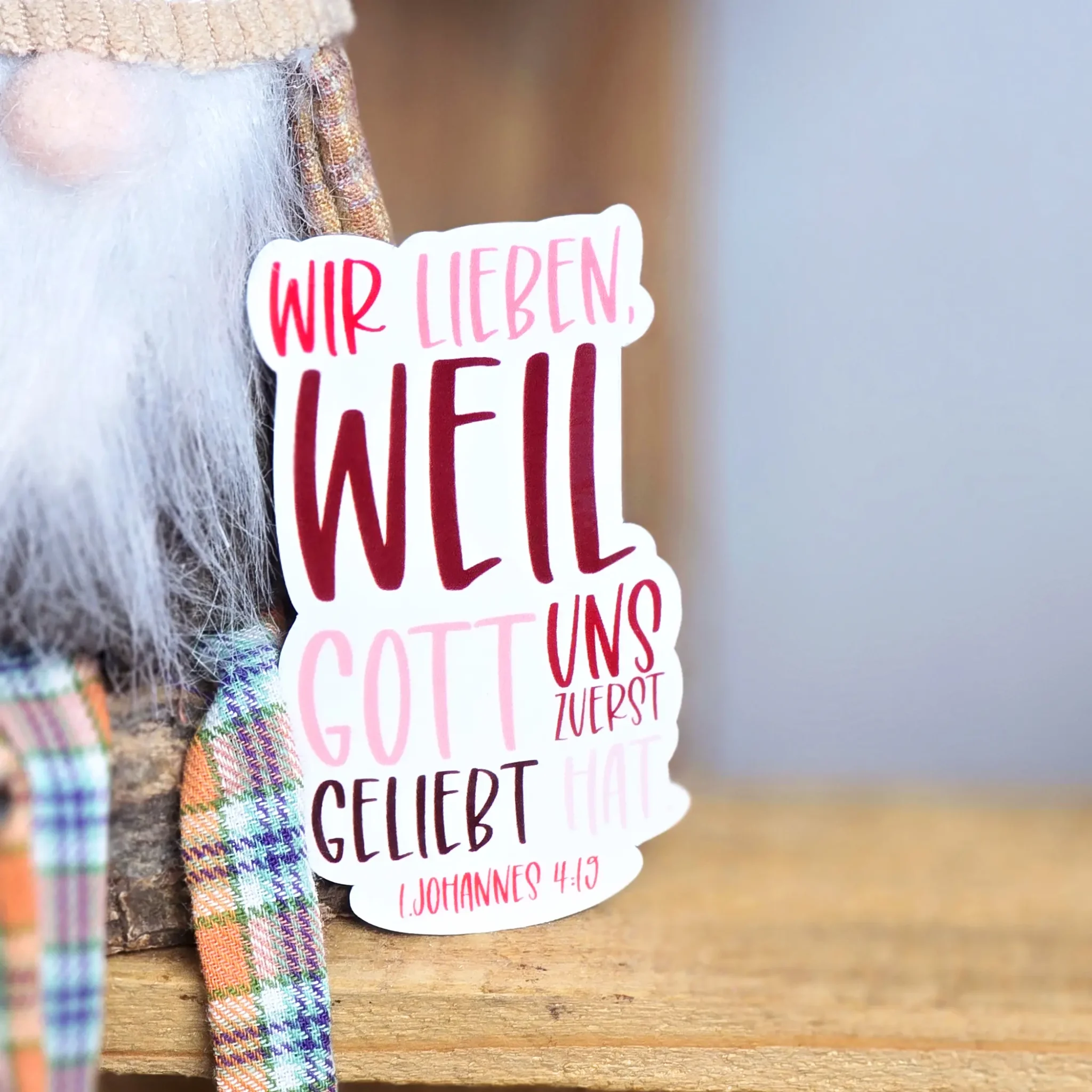 5x Sticker “Wir lieben WEIL Gott uns zuerst geliebt hat” | 1. Johannes 4:19 | Bibelvers | Vinyl | Christlich | Aufkleber | Valentinstag