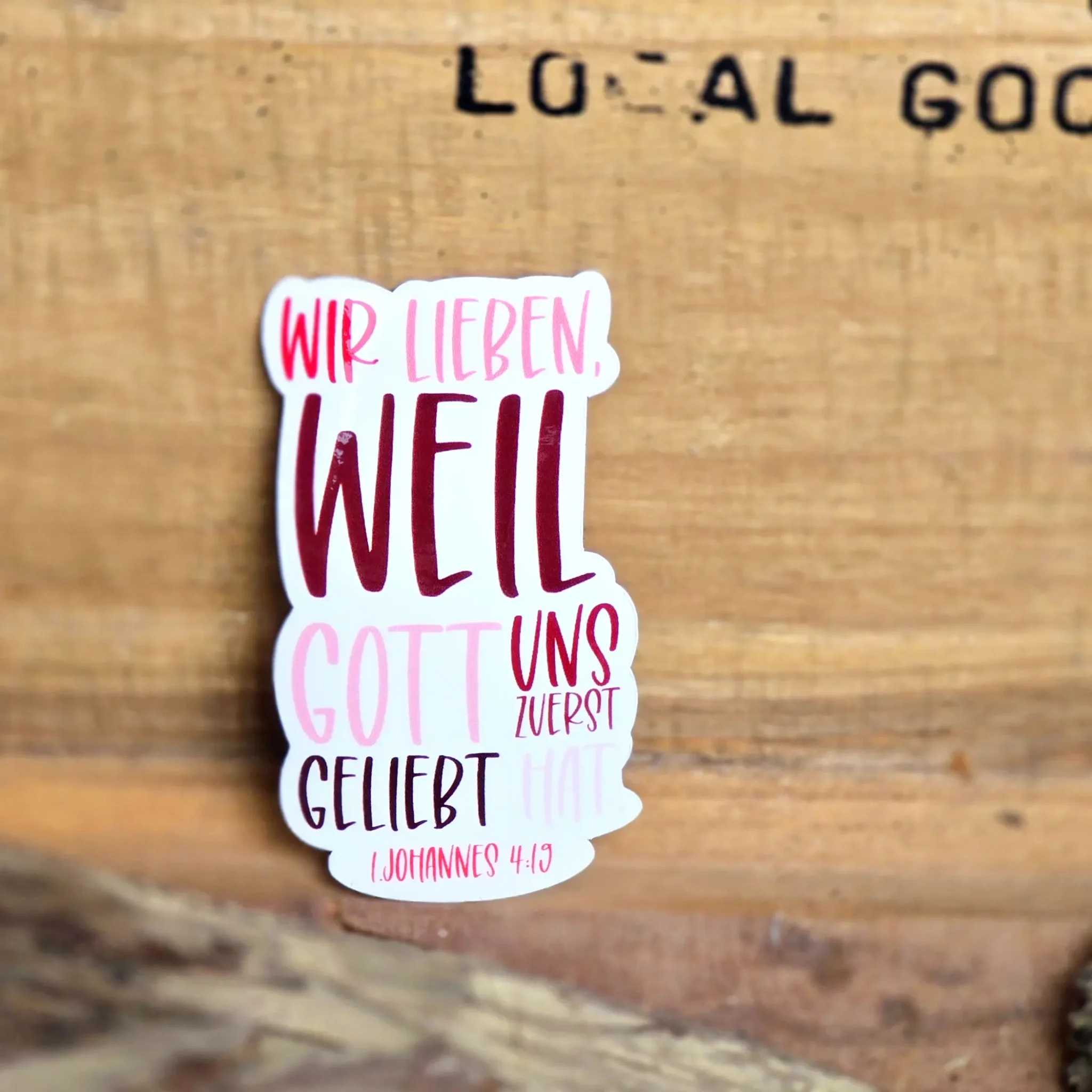 1 Bewertung für 5x Sticker “Wir lieben WEIL Gott uns zuerst geliebt hat” | 1. Johannes 4:19 | Bibelvers | Vinyl | Christlich | Aufkleber | Valentinstag